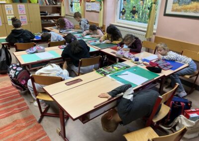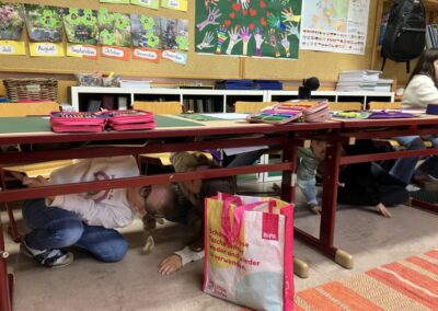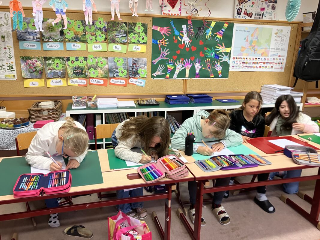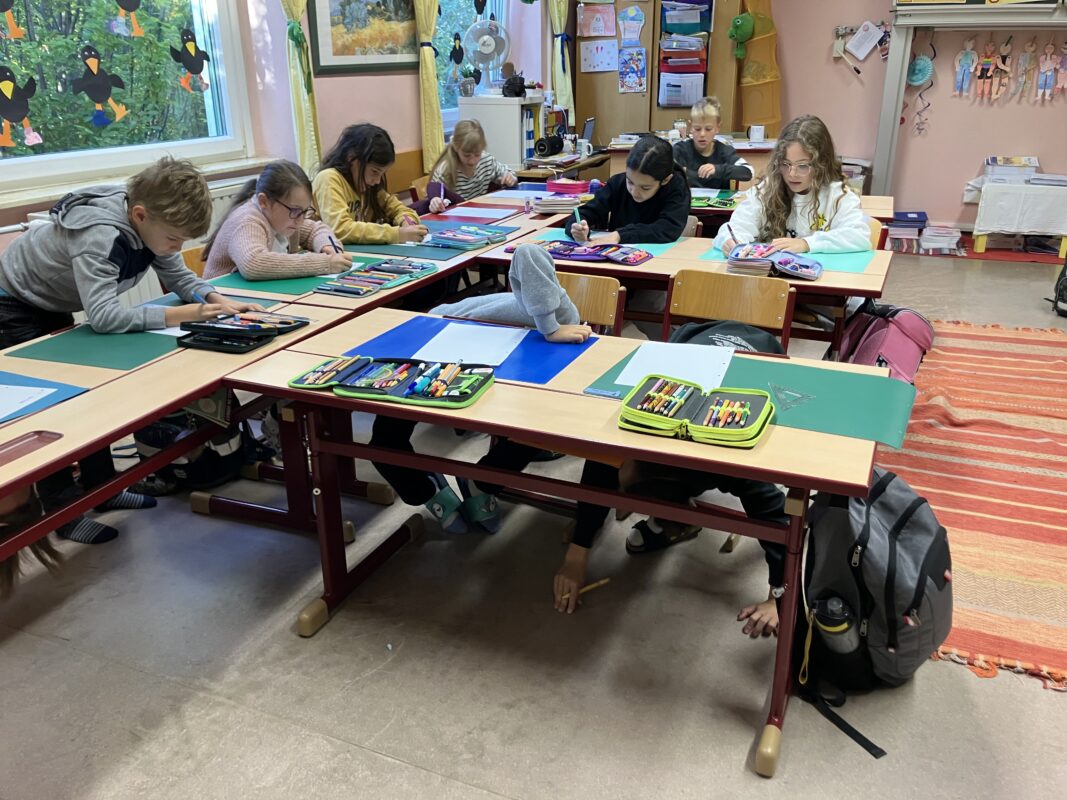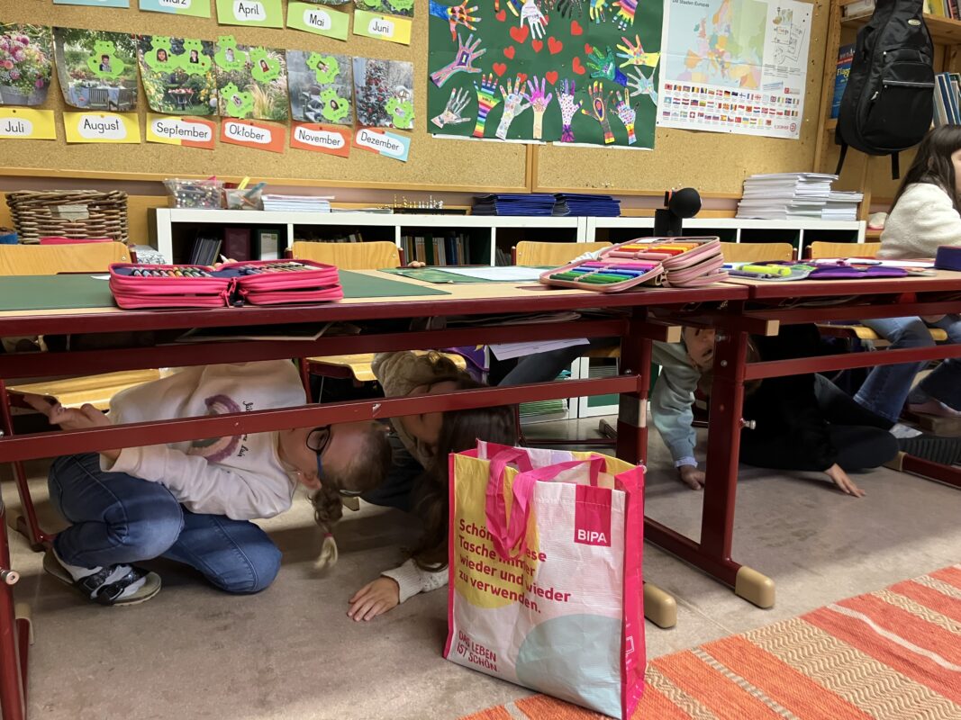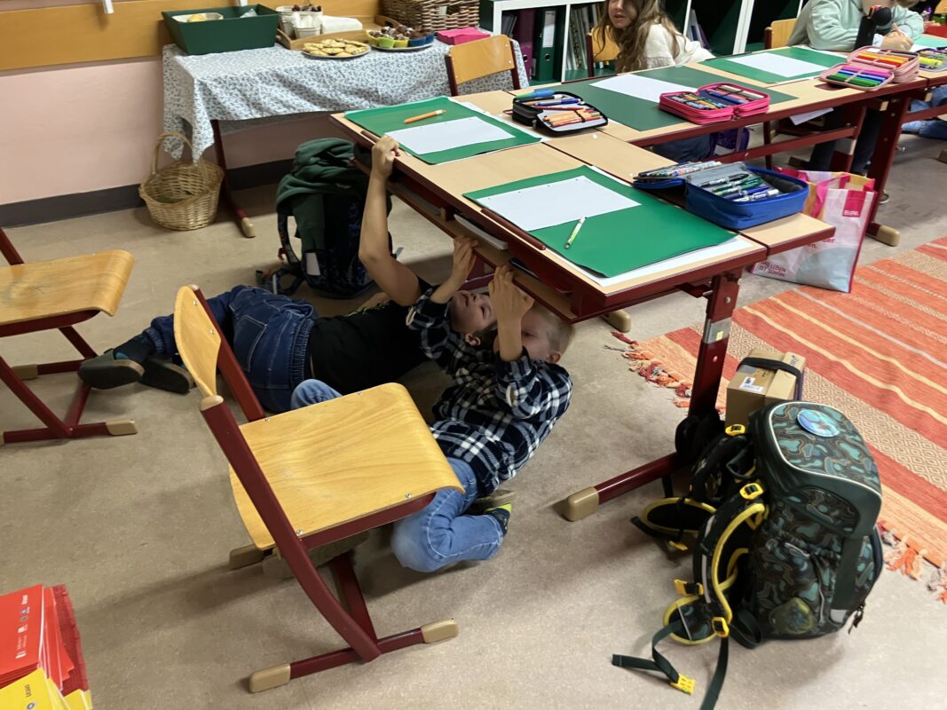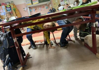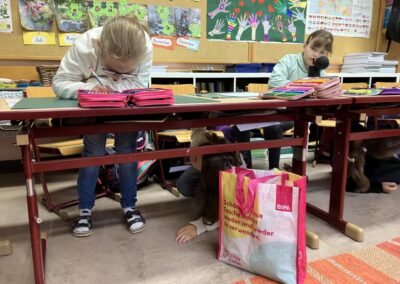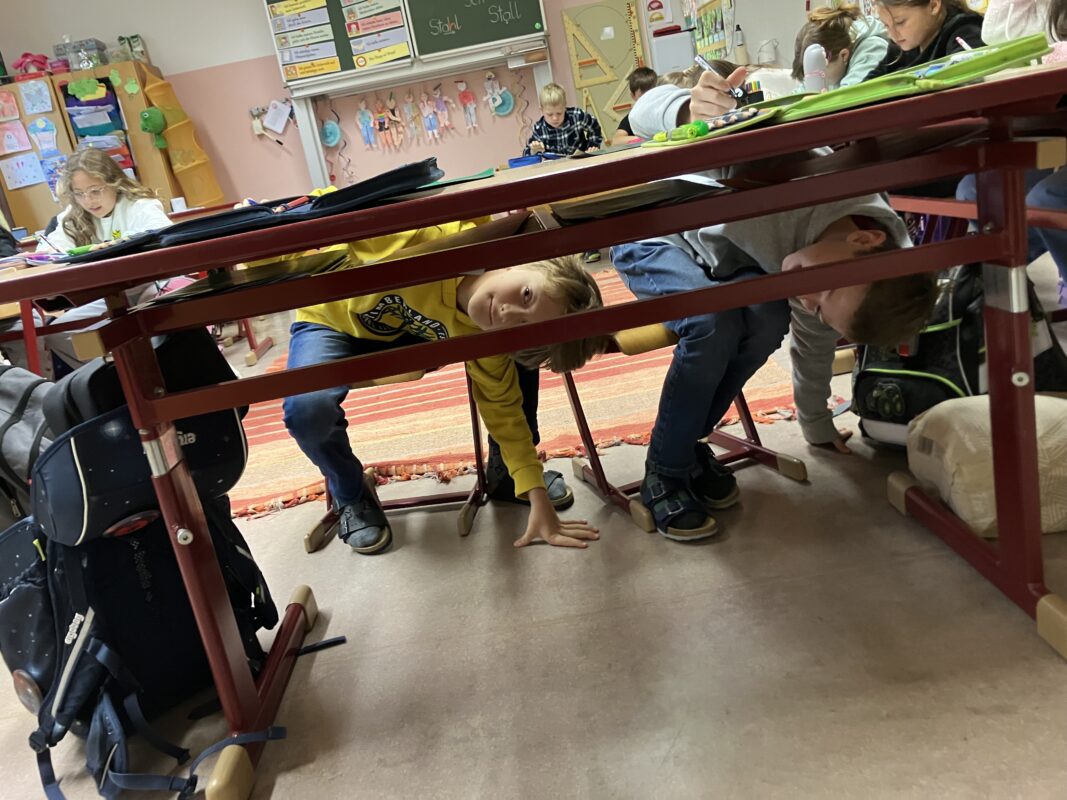 Dieses Mal mussten die Kinder zuerst unter den Tisch „tauchen“, um die Lernwörter-Sätze zu finden. Sich alles gut merken und dann auch noch richtige Sätze aufzuschreiben war eine Herausforderung. Aber es hat wirklich Spaß gemacht!