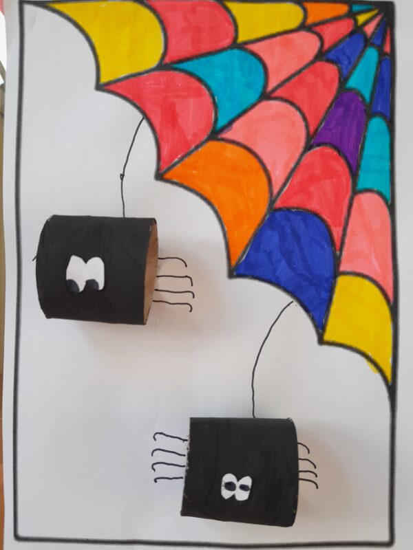 - bunte Spinnenbilder mit Kartonrollen