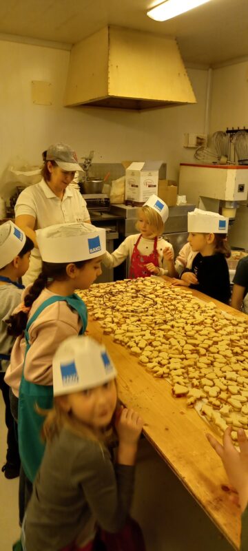 Heute waren wir in der Bäckerei Koarl Brot zum Kekse backen eingeladen.