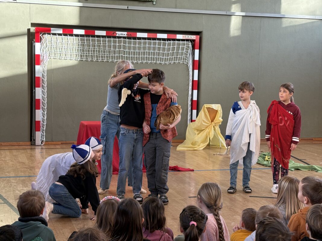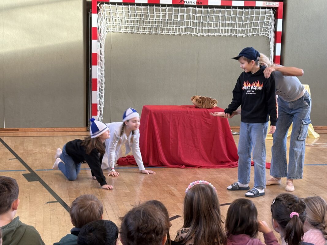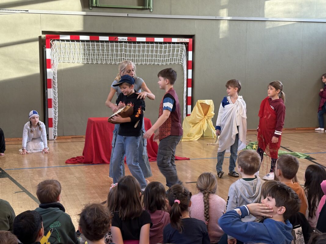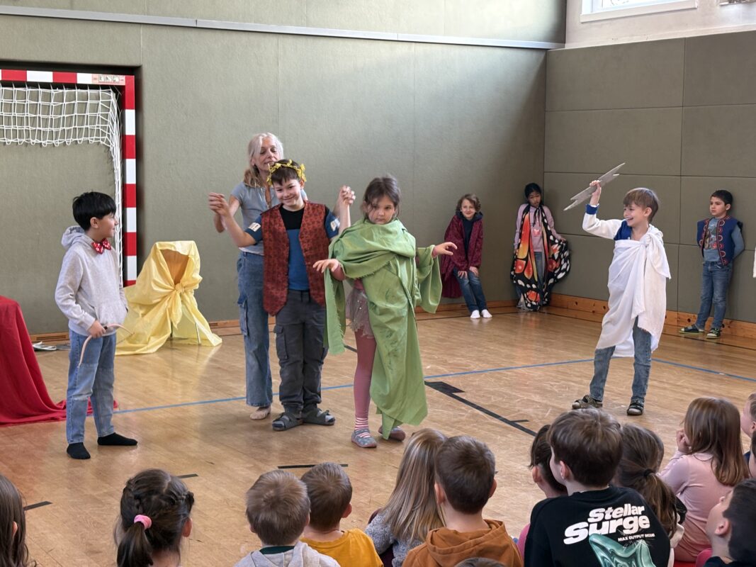 Das Mozart-Ensemble Luzern besuchte uns in der Schule und gestaltete mit den Kindern darstellerisch griechische Göttersagen. Musikalisch wurde alles umrahmt mit der Musik von Jaques Offenbach, dargeboten von einer tollen Pianistin. Die Kinder übernahmen die Figuren der verschiedenen griechischen Göttergestalten und spielten dem gespannten Publikum die Geschichten von Hephaistos, Hermes, Apollo und Daphne und dem Rätsel von Theben vor. Alle waren begeistert über diese äußerst kurzweiligen und sehr lustigen Darbietungen. Vielen Dank an das wunderbare Mozart-Ensemble Luzern! Wir hoffen, dass ihr uns nächstes Schuljahr mit euren neuen Ideen wieder besucht!