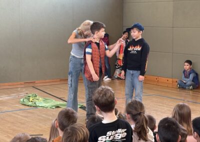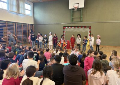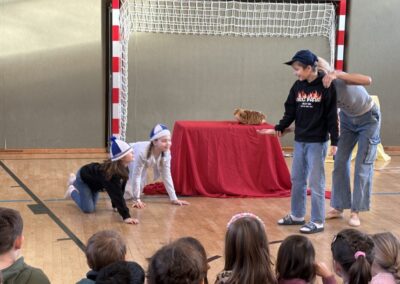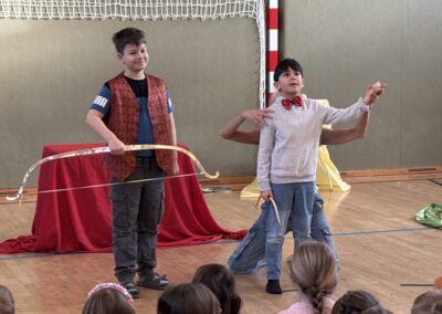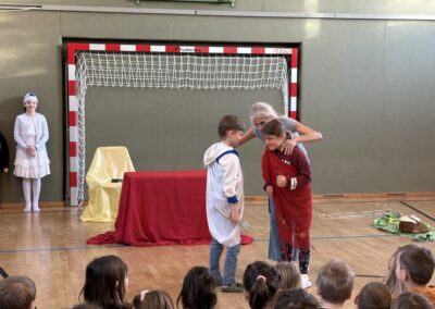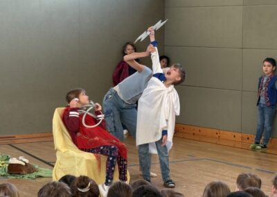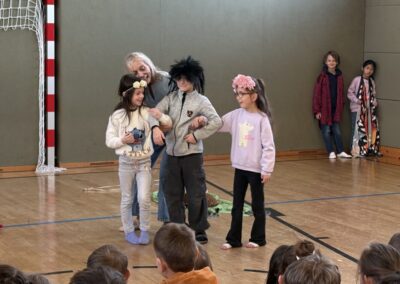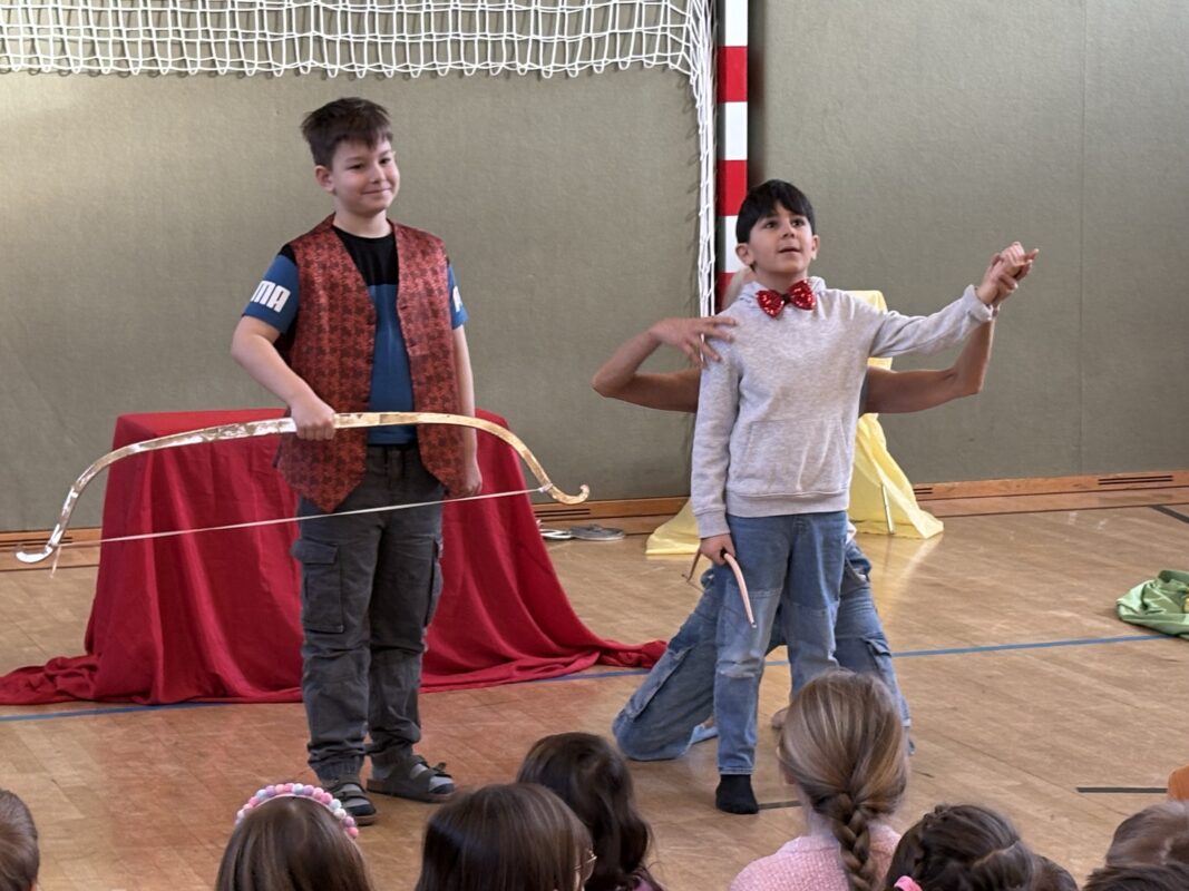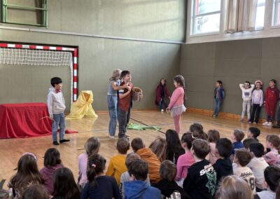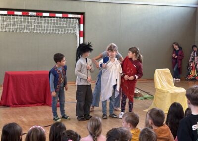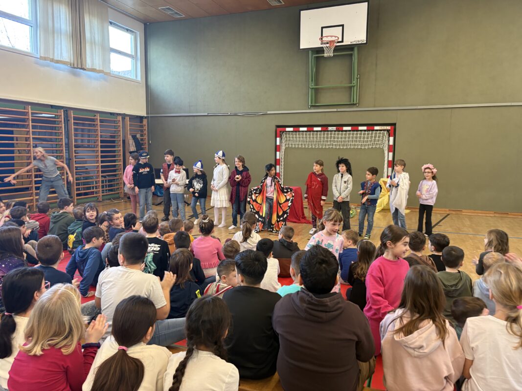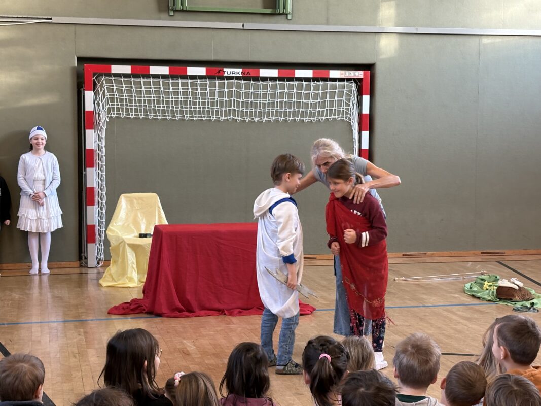 Das Mozart-Ensemble Luzern besuchte uns in der Schule und gestaltete mit den Kindern darstellerisch griechische Göttersagen. Musikalisch wurde alles umrahmt mit der Musik von Jaques Offenbach, dargeboten von einer tollen Pianistin. Die Kinder übernahmen die Figuren der verschiedenen griechischen Göttergestalten und spielten dem gespannten Publikum die Geschichten von Hephaistos, Hermes, Apollo und Daphne und dem Rätsel von Theben vor. Alle waren begeistert über diese äußerst kurzweiligen und sehr lustigen Darbietungen. Vielen Dank an das wunderbare Mozart-Ensemble Luzern! Wir hoffen, dass ihr uns nächstes Schuljahr mit euren neuen Ideen wieder besucht!